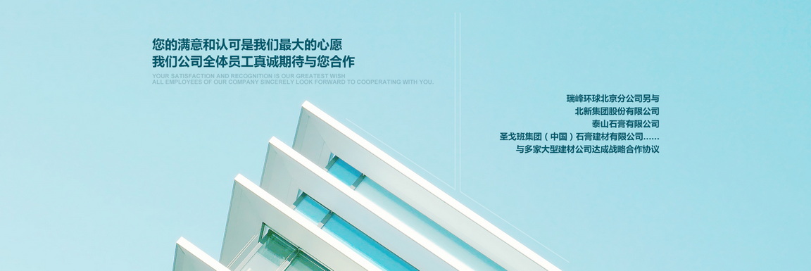 北京市朝陽區金盞鄉科鷹科技園內,是北京最大的建材營銷商之一,專業銷售各種高檔建筑材料的現代化公司.本公司已與多家大型建材廠家達成合作協議:泰山石膏建材有限公司,北新建材有限公司,濱州綠邦有限公司,河北金秋有限公司,北京金隅砂漿有限公司,歐文斯科寧(中國)投資有限公司,湯姆節能建材(北京)有限公司等.更與國外泰國工廠生產的:美巖板,清水板,木絲水泥板,木紋木絲板……簽訂了國內經營權;與德國高新企業超薄石材簽屬超薄巖板國內代理權(超薄巖板,可彎曲石材,厚度1.5~2mm左右)與臺灣合作研發礦石板(以最好的效果提現礦石的效果).好的工程絕對少不了一個好的建筑材料,瑞峰環球攜手各大品牌為您的工程保駕護航.